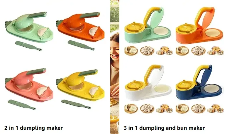 This manual dumpling maker simplifies the dumpling-making process in just a few easy steps: